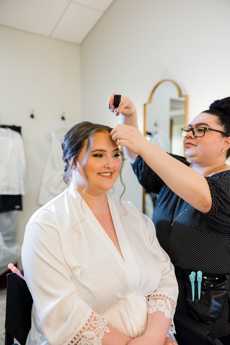 We’ve perfected your makeup, and now it’s time to bring your bridal hair vision to life. Together, we’ll work on creating a polished, long-lasting style that complements your makeup and overall look. From soft curls to a sleek updo, we’ll ensure your hair is frizz-free, beautifully styled, and ready for the entire day.